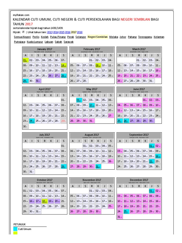 Related : Cuti Umum Negeri Sembilan / Negeri perlis, pulau pinang, perak, selangor, pahang, negeri sembilan, melaka, sabah, sarawak, wilayah persekutuan kuala lumpur, putrajaya..