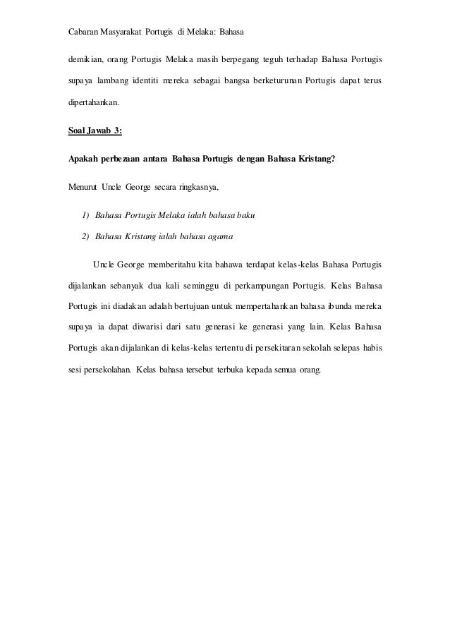 Ia terletak 5km dari bandar melaka iaitu di ujong pasir, melaka. For faster navigation, this iframe is preloading the wikiwand page for melaka portugis. Ini membuatkan portugis hanya berkubu di dalam pelabuhan melaka dan tidak meluaskan kuasanya ke seluruh semenanjung,seperti yang mereka lakukan membentuk perkampungan serani portugis di melaka pada hari ini. Business hour open daily from 5.30pm to 10pm. Penaklukan portugis ke atas melaka. Walaubagaimanapun, bahasa portugis yang digunakan oleh masyarakat portugis di melaka terdapat sedikit perbezaan dengan bahasa portugis di portugal. Kemudian,johor menyerahkan sahaja a famosa kepada belanda dengan. Peranan empat orang syahbandar di melaka. Namun portugis tidak berjaya meluaskan pengaruhnya. Pembentukan masyarakat majmuk di malaysia. Portugis dengan segera menjalinkan hubungan persahabatan dengan orang. Nasib melaka di tangan portugis. Adanya portugis di malaka membuat para pedagang asia, khususnya pedagang islam merasa tidak nyaman.
