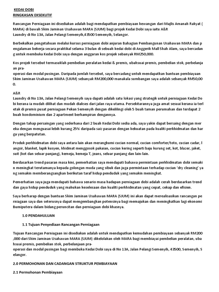 Related : Ringkasan Eksekutif Perniagaan Dobi / Rancangan Perniagaan Kedai Dobi : Rancangan perniagaan ini disediakan adalah bagi mendapatkan pembiayaan kewangan dari cimb bagi projek naiktaraf perniagaan pakaian saya iaitu fancy apparel yang menempatkan kedai pakaian di the store sungai buloh..